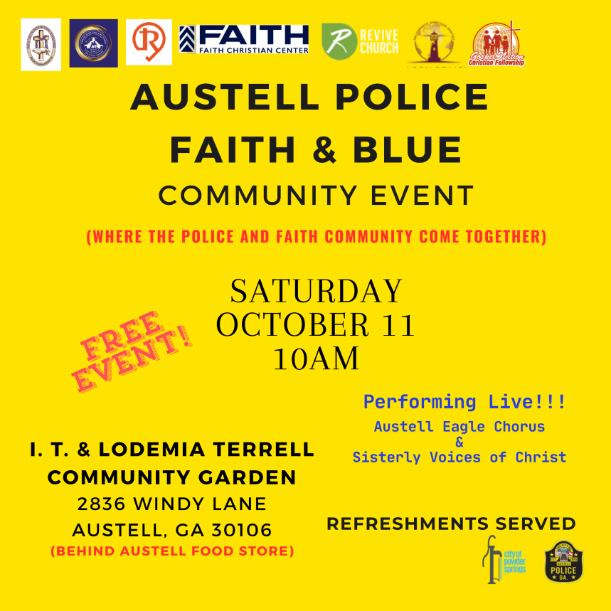 Events & Activities Faith & Blue September 30, 2025 Share FacebookTwitterWhatsApp October 11th, 2025Time: 10AM Read more Community News 2026 City of Austell State of the City Address / Townhall Meeting Community News 2026 HOA Dues Now Due Events & Activities HOA Winter Wine Tasting – Private Event Events & Activities Chills and Thrills Events & Activities THE GRAND ROYALE Local News Community News 2026 City of Austell State of the City Address / Townhall Meeting Community News 2026 HOA Dues Now Due Events & Activities HOA Winter Wine Tasting – Private Event Events & Activities Chills and Thrills